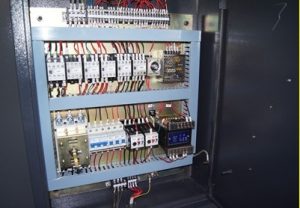 3. Electric box sa kaliwang bahagi. Ang pinapatakbo na mga pindutan ay nasa talahanayan ng pindutan ng makina. Ang mga de-koryenteng switch, ang mga ilaw ng indicator ay nasa kuryenteng kaso.