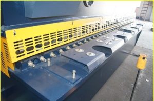 2.Backguage: Pagse-set sa tooling set, swing sa up-tooling set, hinimok ng 0.55KW Electric Motor. Ang rear stopper ay nilagyan ng electric adjustment at manual adjustment device, at available ang digital display device para sa display ng laki ng stopper at oras ng shearing.